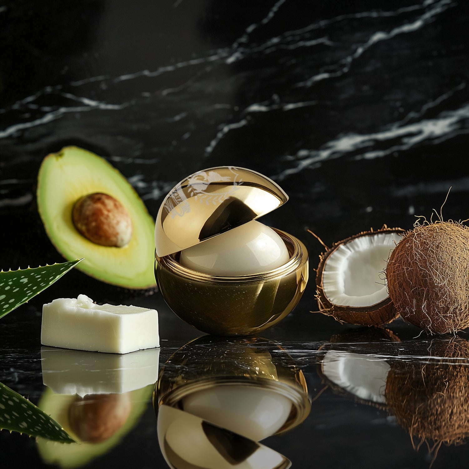 Formulated with high-performance ingredients like Hyaluronic Acid, Collagen Peptides, Shea Butter, Jojoba Oil, Vitamin E, and Niacinamide to deeply hydrate, soften, and rejuvenate lips. Vanilla Bourbon & Honey extracts create a sensual scent and taste. Cinnamon Bark and Peppermint Oils offer a plumping effect, while Licorice Root and Turmeric Extract help brighten the lip tone. Each ingredient is ethically sourced and curated for efficacy and a luxurious sensory experience.
